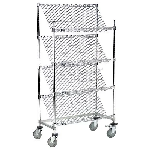 Nexel® 4 Slant Shelf Truck, Chrome, 48"W x 24"D x 69"H, Polyurethane Casters, 4 Swivel, 2 Brake