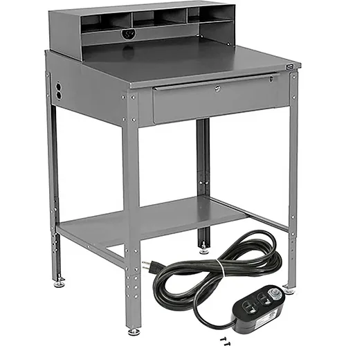 Global Industrial Sloped Shop Desk w/ Pigeonhole Riser & Outlets, 34-1/2'W x 30"D, Gray