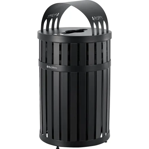 Global Industrial Slatted Steel Recycling Can with Canopy Top, 45 Gallon, Black