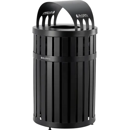 Global Industrial Slatted Steel Trash Can with Canopy Top, 45 Gallon, Black