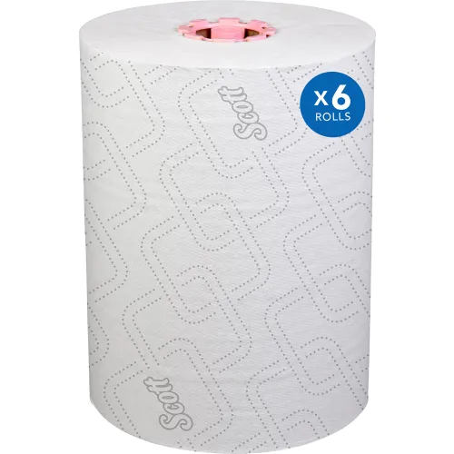 Scott® Slimroll Towels, 1-Ply, 8" x 580 ft, White/Pink Core, Traditional Business, 6 Rolls/CT
