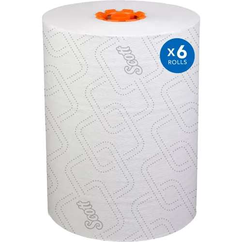 Scott® Slimroll Paper Towel, 1-Ply, 8"W x 580'L, Orange Core, White, 696/Roll, 6 Rolls