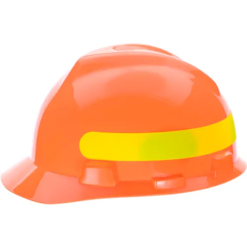 MSA V-Gard® Slotted Cap With 1-Touch Suspension, Hi-Viz Orange With Yellow-Green Stripe
