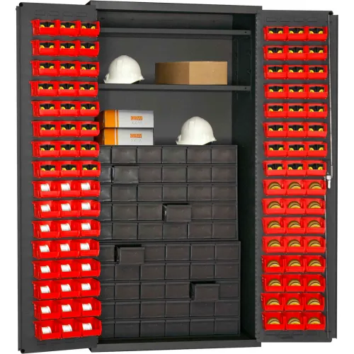 Durham Small Parts Storage Cabinet 3501-DLP-60DR11-96-2S1795 - 60 Drawers, 96 Red Bins, 2 Shelves