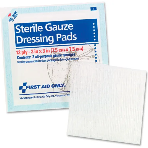 First Aid Only SmartCompliance Gauze Pad, Sterile, 12-Ply, 3" x 3", 5 Dual-Pads/Pack