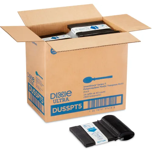 Dixie® SmartStock TriTower Dispensing System Teaspoons, Polypropylene, Black, Pack of 960