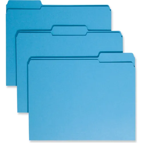 Smead® File Folders, 1/3 Cut, Reinforced Top Tab, Letter, Blue, 100/Box
