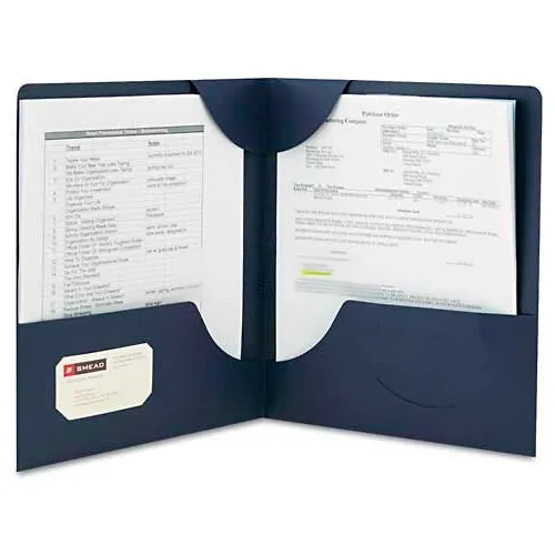 Smead® Lockit Two-Pocket Folder, Leatherette Stock, 11 x 8-1/2, Dark Blue, 25/Box