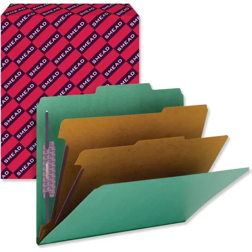 Smead® Pressboard Classification Folders, Letter, Six-Section, Green, 10/Box