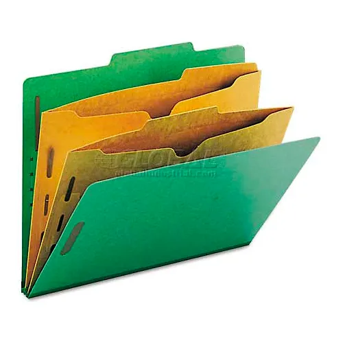 Smead® Pressboard Folders with Two Pocket Dividers, Letter, Six-Section, Green, 10/Box