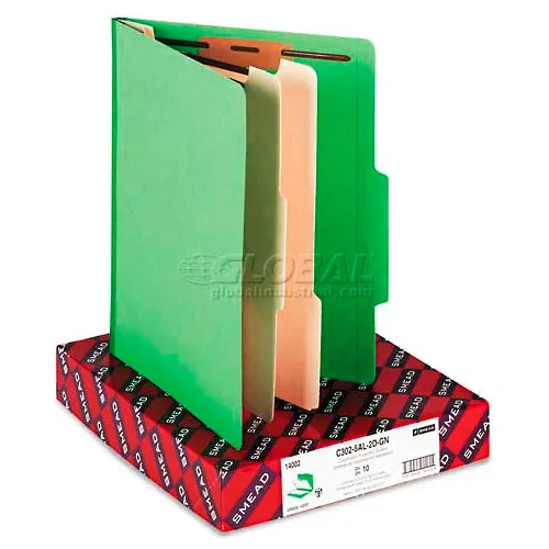 Smead® Top Tab Classification Folders, Two Dividers, Six-Section, Green, 10/Box