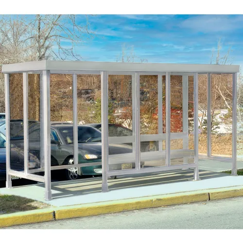 Smoking Shelter 6-2WSF-CA, 4-Sided W/L & R Open Front, 15'L x 5'W, Flat Roof, Clear