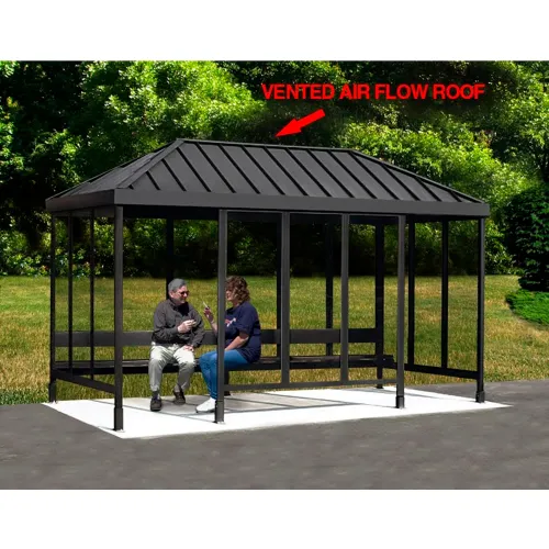Smoking Shelter 6-3WSVR-DKB, 4-Sided, L & R Open FR, 15'L x 7'6"W, Vented Standing Seam Roof, DK BRZ