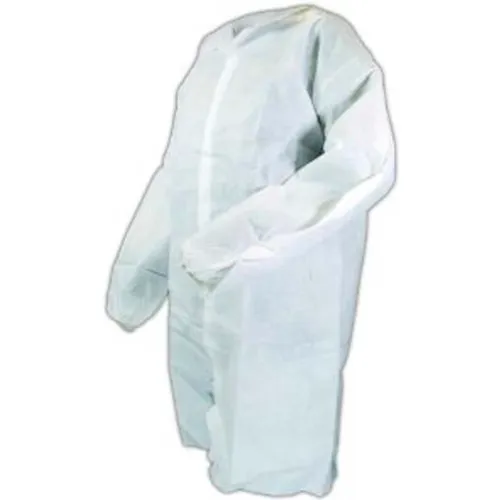 SMS Lab Coat, No Pockets, Elastic Wrists, Snap Front, Single Collar, White, L, 30/Case