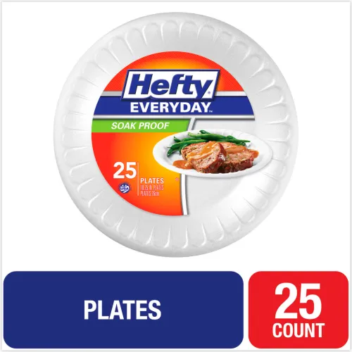 Hefty® Soak Proof Foam Plates Tableware, 10-1/4" Dia., White, Pack of 25