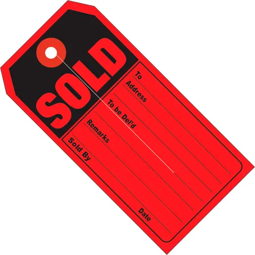 Global Industrial "Sold" Retail Tag, #5, 4-3/4"L x 2-3/8"W, Red/Black, 500/Pack