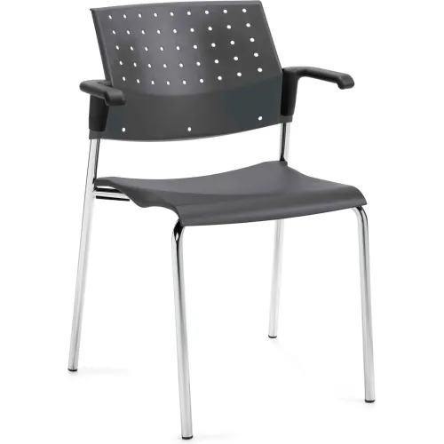Global™ Stacking Chair with Arms - Plastic - Platinum - Sonic Series