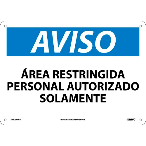 Spanish Plastic Sign - Aviso Area Restringida Personal Autorizado Solamente