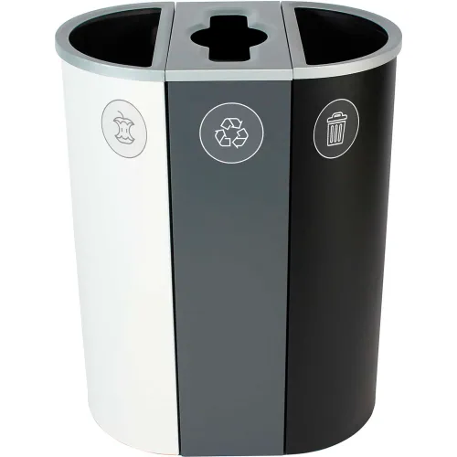 Busch Systems Spectrum Triple - Organics/Recycling/Waste, 26 Gallon - White/Gray/Black - 101203