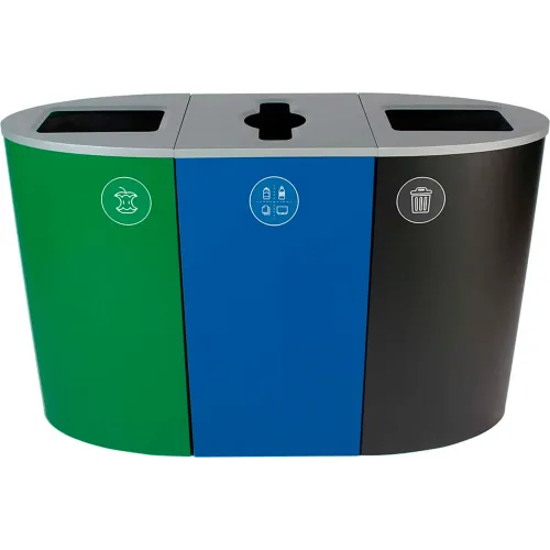 Busch Systems Spectrum Triple - Organics/Recycling/Waste, 68 Gallon - Green/Blue/Black - 101195