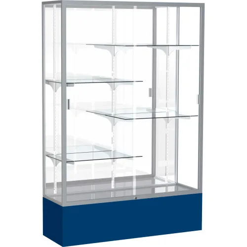 Spirit Display Case Navy Base, Satin Frame, Mirror Back 48"W x 16"D x 72"H