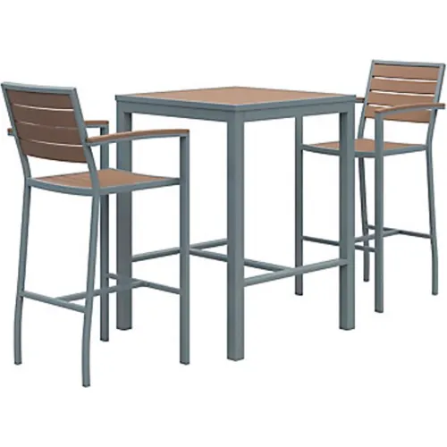 KFI Square Table 30" with 2 Chairs, Silver/Mocha