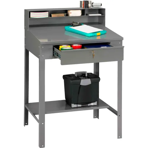 Tennsco Shop Desk, Pigeonhole Riser/Drawer, Shelf, 34-1/2"W x 29"D, Gray