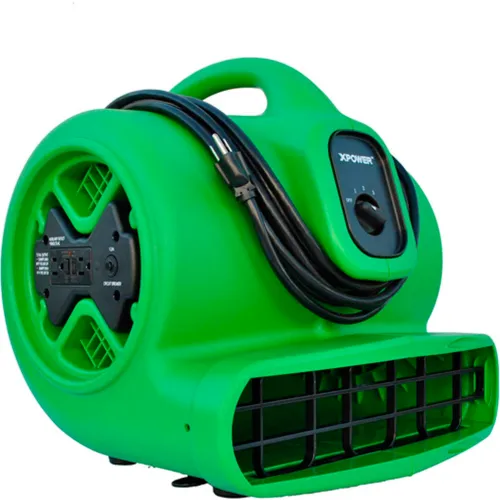 XPOWER Stackable Air Mover With GFCI Outlet For Daisy Chain, 3 Speed, 1/3 HP, 2400 CFM, Green