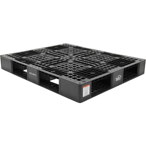 Stackable Open Deck Pallet, Plastic, 4-Way Entry, 47-3/8" x 39-1/2", 8000 Lb Stat Cap, Black