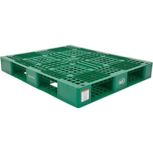 Stackable Open Deck Pallet, Plastic, 4-Way Entry, 47-3/8" x 39-1/2", 8000 Lb Stat Cap, Green