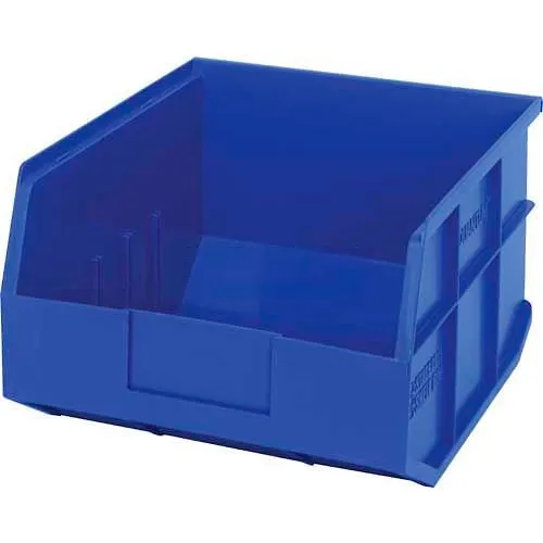 Quantum Storage Plastic Hang & Stack Shelf Bin, 12"L x 11"W x 7"H, Blue - Pkg Qty 6