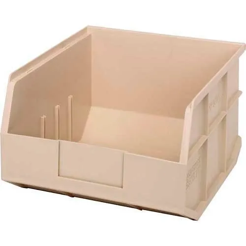 Quantum Storage Plastic Hang & Stack Shelf Bin, 12"L x 11"W x 7"H, Ivory - Pkg Qty 6