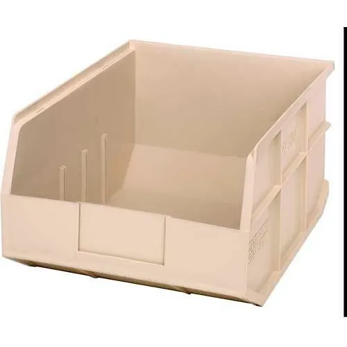 Quantum Storage Plastic Hang & Stack Shelf Bin, 14"L x 11"W x 7"H, Ivory - Pkg Qty 6