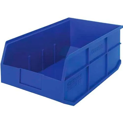 Quantum Storage Plastic Hang & Stack Shelf Bin, 18"L x 11"W x 7"H, Blue - Pkg Qty 6