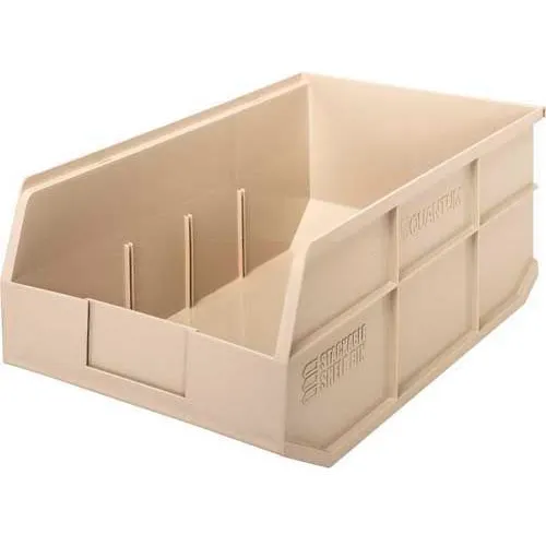Quantum Storage Plastic Hang & Stack Shelf Bin, 18"L x 11"W x 7"H, Ivory - Pkg Qty 6