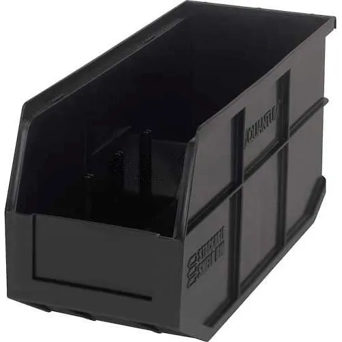 Quantum Storage Plastic Hang & Stack Shelf Bin, 14"L x 6"W x 7"H, Black - Pkg Qty 12