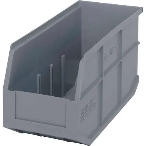 Quantum Storage Plastic Hang & Stack Shelf Bin, 14"L x 6"W x 7"H, Gray - Pkg Qty 12