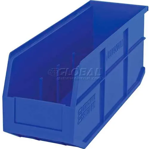 Quantum Storage Plastic Hang & Stack Shelf Bin, 18"L x 6"W x 7"H, Blue - Pkg Qty 6