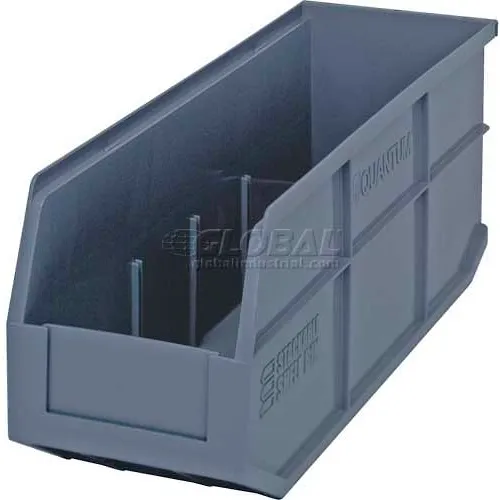 Quantum Storage Plastic Hang & Stack Shelf Bin, 18"L x 6"W x 7"H, Gray - Pkg Qty 6