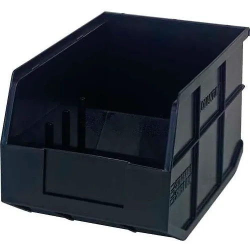 Quantum Storage Plastic Hang & Stack Shelf Bin, 12"L x 8-1/4"W x 7"H, Black - Pkg Qty 6