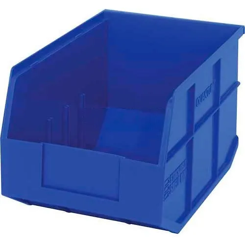 Quantum Storage Plastic Hang & Stack Shelf Bin, 12"L x 8-1/4"W x 7"H, Blue - Pkg Qty 6