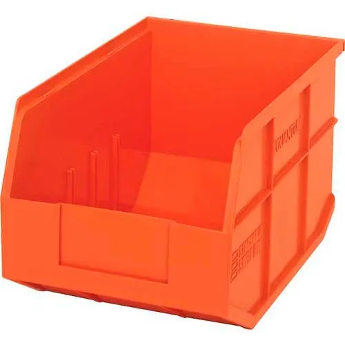 Quantum Storage Plastic Hang & Stack Shelf Bin, 12"L x 8-1/4"W x 7"H, Orange - Pkg Qty 6