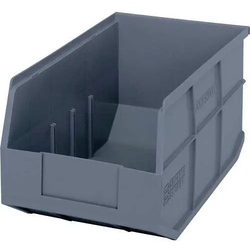Quantum Storage Plastic Hang & Stack Shelf Bin, 14"L x 8-1/4"W x 7"H, Gray - Pkg Qty 12