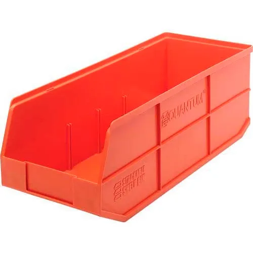 Quantum Storage Plastic Stackable Shelf Bin, 20-1/2"L x 8-1/4"W x 7"H, Orange - Pkg Qty 6