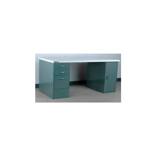 Stackbin Workbench, Pedestal Workbench, PLAS. Laminate Safety Edge, 48"W X 36"D, GY