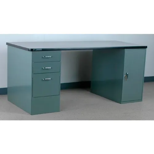 Stackbin Workbench, Pedestal Workbench, PLAS. Laminate w/T Molding, 48"W X 30"D, GY