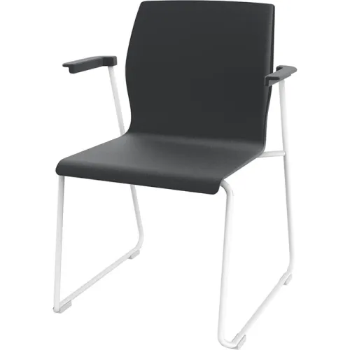 Interion® Stacking Lounge Chair with Fixed Armrest, Polypropylene, Black, 2/Pack