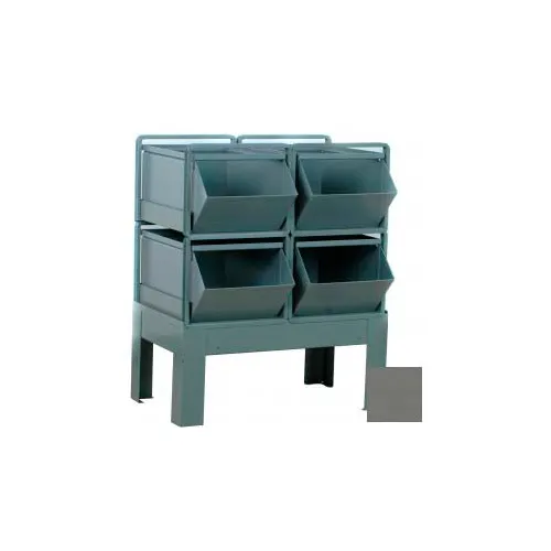 Stackbin® Steel Hopper Bin Stackrack Unit, 34-1/2"W X 24"D X 37"H, 4 Steel Bins, Gray