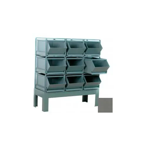 Stackbin® Steel Hopper Bin Stackrack Unit, 51-1/4"W X 24"D X 48"H, 9 Steel Bins, Gray