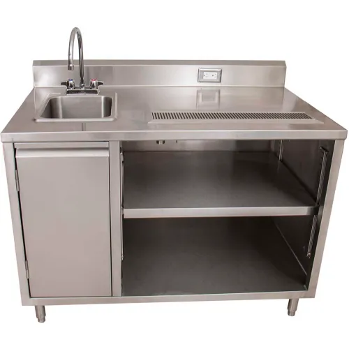 BK Resources Stainless Beverage Table, Sink On Left, 5"Riser Electric Outlet 30X60